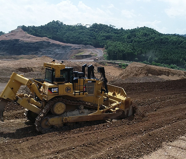 砕かれた原石を重機でダンプに積み込み、砕石プラントへ運搬します。