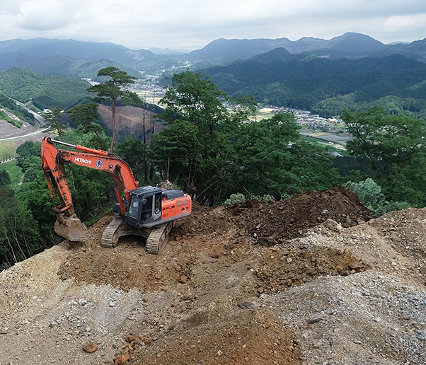 岩盤を覆う土を取り除きます。 -